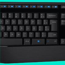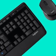 O teclado do MK345 é construído com tecnologia à prova de líquidos e feito para durar. Possui mecanismo de ajuste de altura para aumentar o conforto.