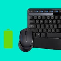 Abuse da incrível durabilidade de 3 anos das pilhas do teclado e 18 meses das pilhas do mouse, que vem com indicador de vida útil das pilhas e entra em modo de suspensão automática quando não usado.